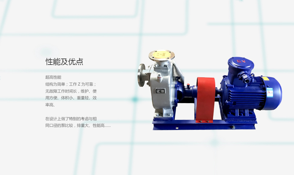 ZX系列自吸式離心泵是屬自吸式離心泵,它具有結(jié)構(gòu)緊湊、操作方便、運(yùn)行平穩(wěn)、維修方便、效率高、壽命長(zhǎng)、并有較強(qiáng)的自吸能力等優(yōu)點(diǎn)。管路中不需安裝底閥,工作前只需保留泵體內(nèi)儲(chǔ)有定量引液即可,因此簡(jiǎn)化了管路系統(tǒng),又改善了勞動(dòng)條件。