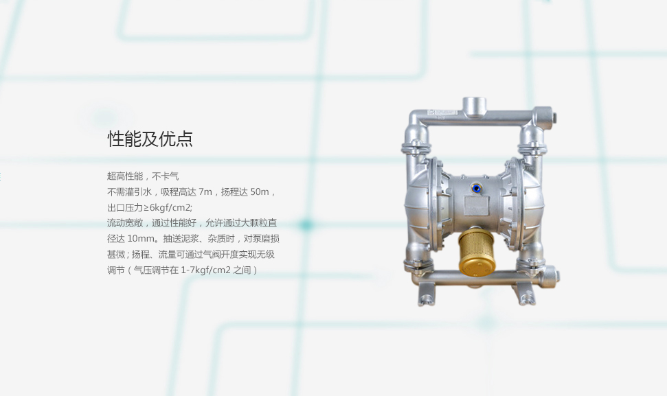 6、下水井、暗溝排除漬水、污油在下水井管道,閥門及暗溝檢修時,需要排除漬水和污油。用潛水泵雖可抽盡潰水,但往往這些地方都遠離電源,很不方便。使用隔膜泵則可采用壓縮氣瓶作動力,回收污油,排泄?jié)⑺?br /> 7、污水處理場和污泥池的清掃污水處理場的污泥池,常常聚積大量的油泥和淤沙,需要清掃,采用隔膜泵抽吸靈活、方便省工、省力、省時。