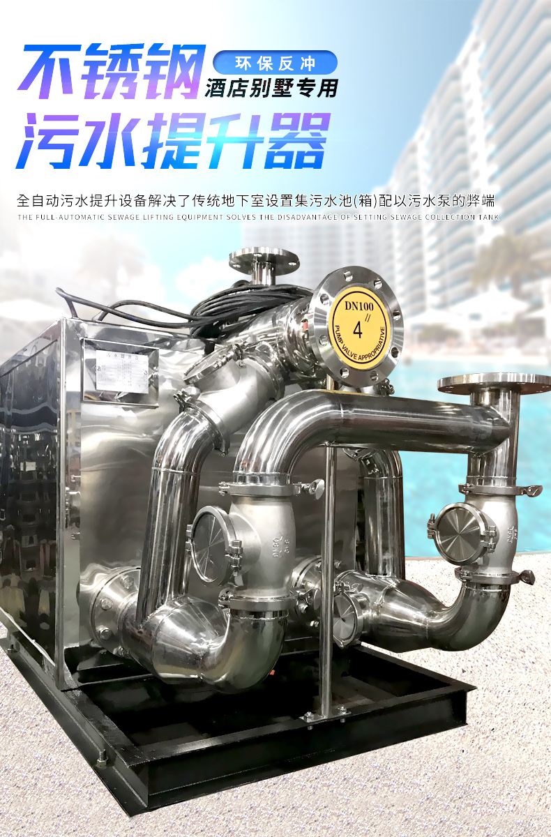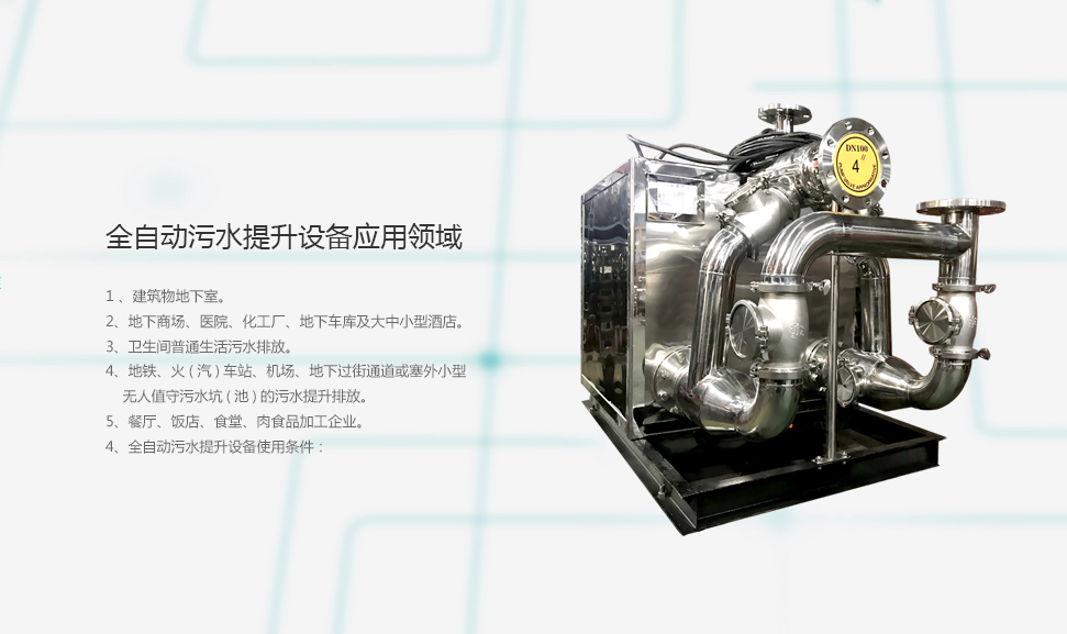 3、采用知名品牌排污泵:石一污水提升器采用安全可靠的優(yōu)質排污泵,即可保證排水的順暢,降低了使用和維修成本,打破依賴進口絞刀泵進行污水提升易纏繞堵塞的弊端;