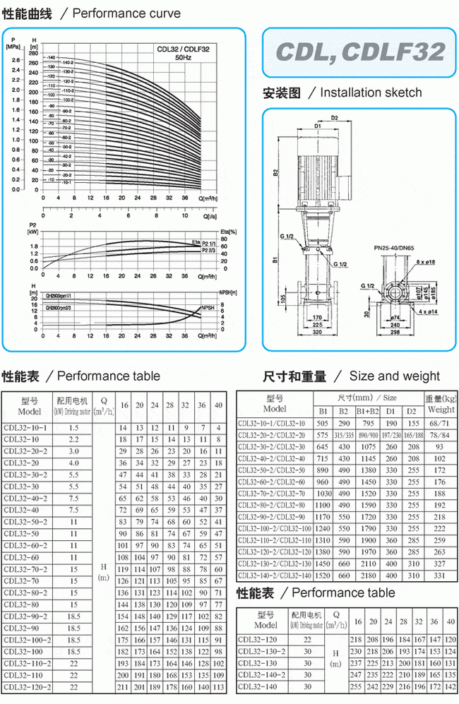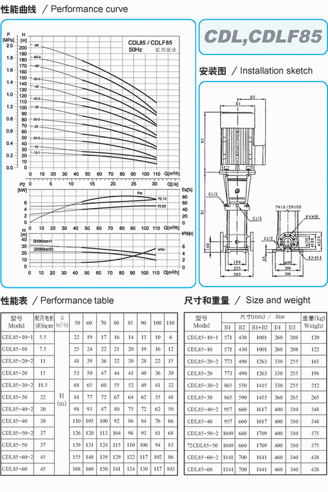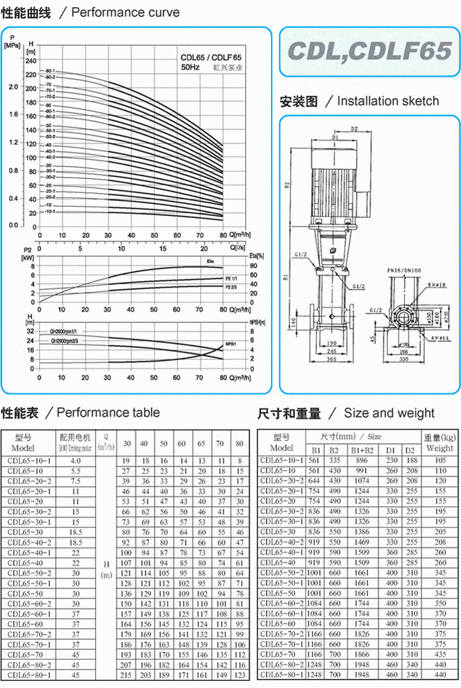 QDL2/QDLF2輕型多級泵性能參數(shù)表